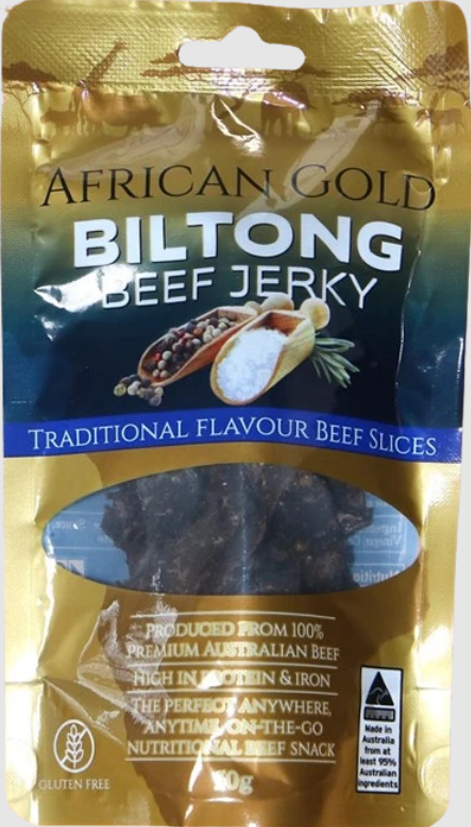 An authentic and traditional South African Biltong using only the finest quality Australian Beef and spices. Not only an extremely tasty snack, but it is also a healthy choice.