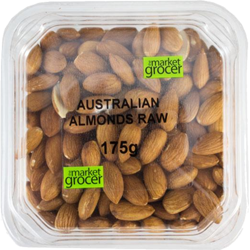 The Market Grocer Almonds Raw 175g: Enjoy premium quality raw almonds packed with nutrients and flavor. Perfect for snacking, baking, or adding to your favorite dishes. Boost your health and satisfy your cravings with every bite.