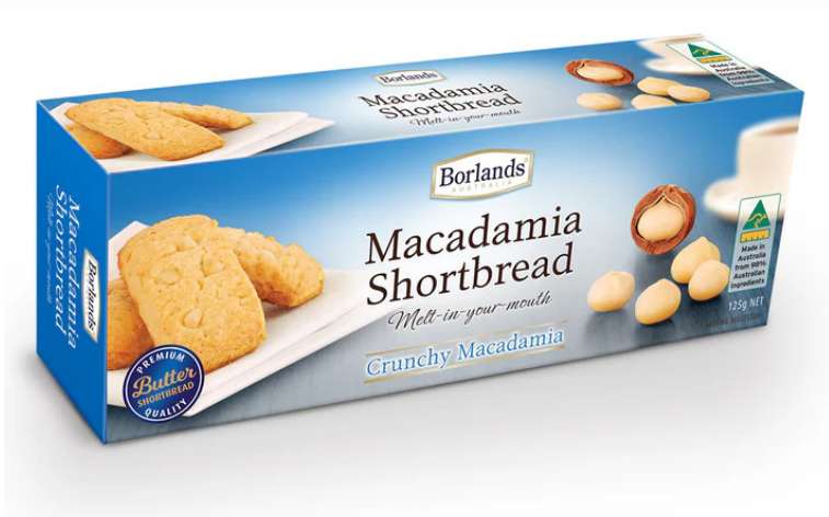 Indulge in the rich, buttery goodness of Borlands Crunchy Macadamia Shortbread. Made with premium macadamia nuts, these delectable treats are perfect for satisfying your sweet cravings. Treat yourself to a taste of luxury with every bite of our 125g pack of shortbread cookies.