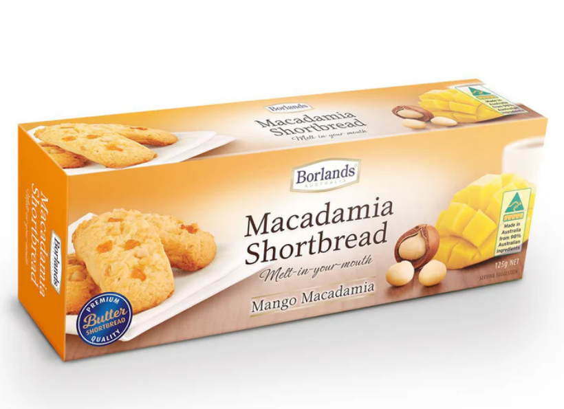 Indulge in the rich and buttery goodness of Borlands Mango Macadamia Shortbread. Made with premium ingredients, these delectable cookies are the perfect blend of tropical mango and crunchy macadamia nuts. Treat yourself to a taste of paradise with every bite. Ideal for snacking, gifting, or enjoying with a cup of tea. Experience a burst of flavor in every 125g pack.