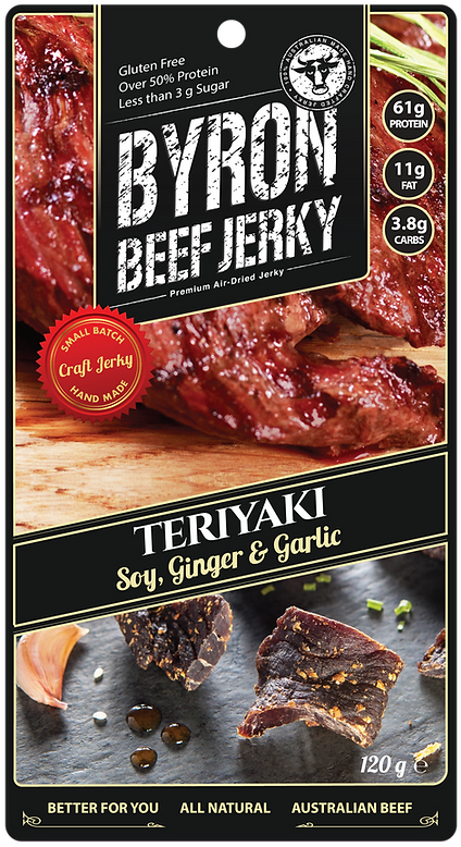Deep, savoury, and perfectly balanced, Byron Beef Jerky Teriyaki Flavour delivers rich umami in every bite. Marinated in a classic blend of soy, ginger, and garlic, this 120g pack offers a bold yet refined jerky experience with subtle sweetness and aromatic warmth. Crafted from premium Australian beef and air-dried to lock in flavour, it's a low-carb, high-protein snack made for those who appreciate depth and authenticity.