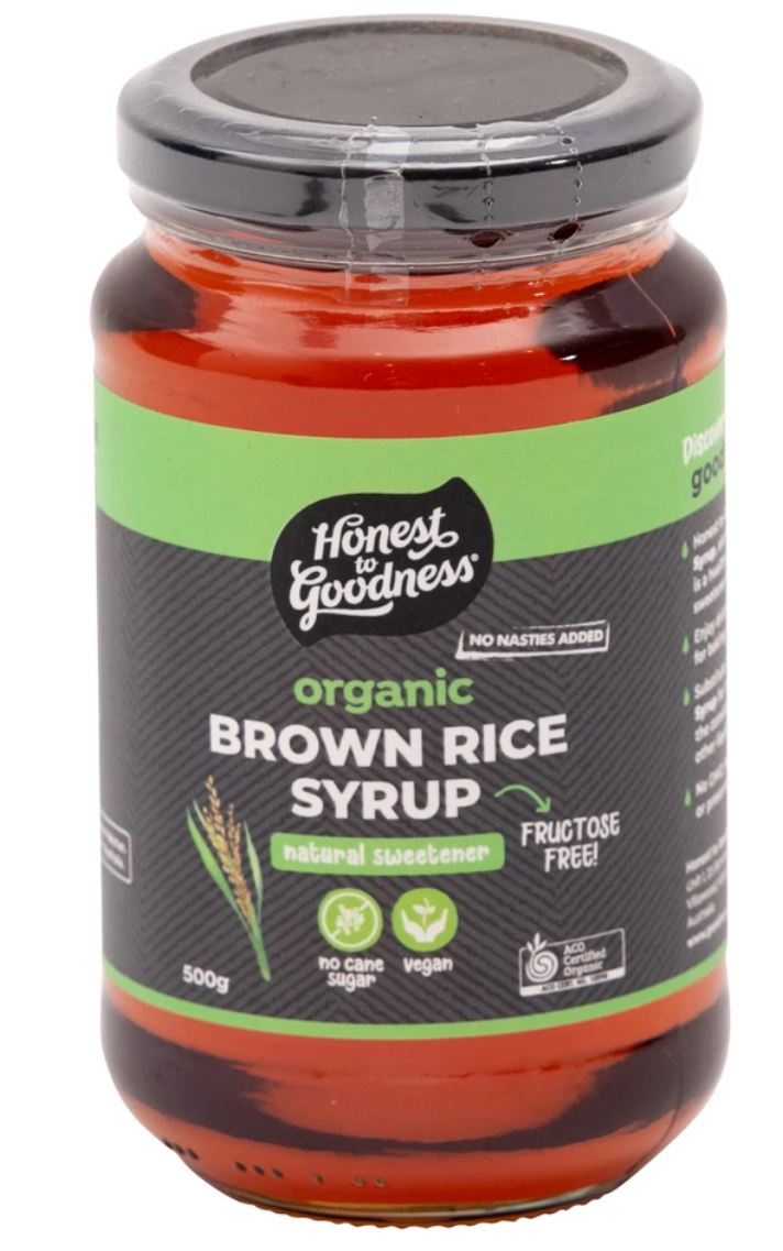 Organic brown rice syrup, also known as rice malt syrup, is fructose free and a versatile natural sweetener. Made from fermented organic brown rice, it can be used as an alternative for sugar, honey or maple syrup. This syrup has a mild, caramel-like sweetness that is scrumptious drizzled over pancakes and waffles, or in raw desserts and other treats!