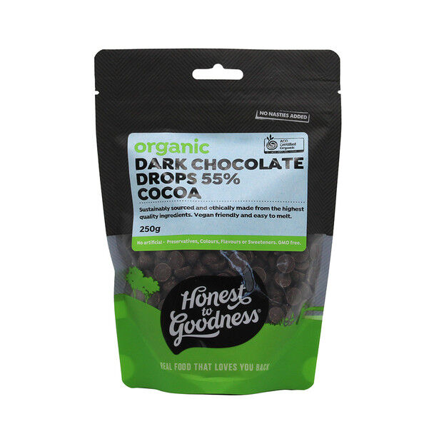 Organic Dark Chocolate Drops (55% cocoa) are sustainably sourced and ethically made from the highest quality ingredients. These drops have a lovely rich, smooth dark chocolate flavour that is perfect for dairy-free and vegan-friendly cooking.