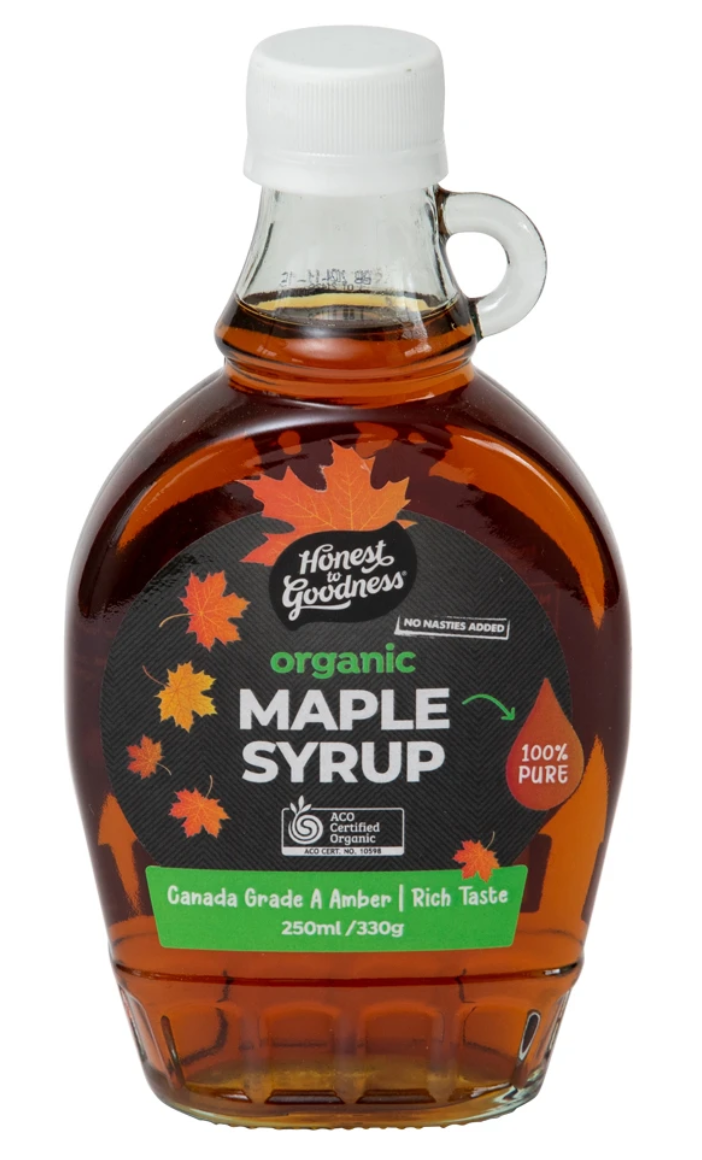 Honest to Goodness Organic Maple Syrup is amber in colour and has a delightful, rich maple flavour. Unlike maple flavoured syrups which can contain additives such as corn syrup, glucose, artificial flavouring, preservatives or other additives, Honest to Goodness organic maple syrup is crafted from 100% pure Canadian maple tree sap – no nasties added.