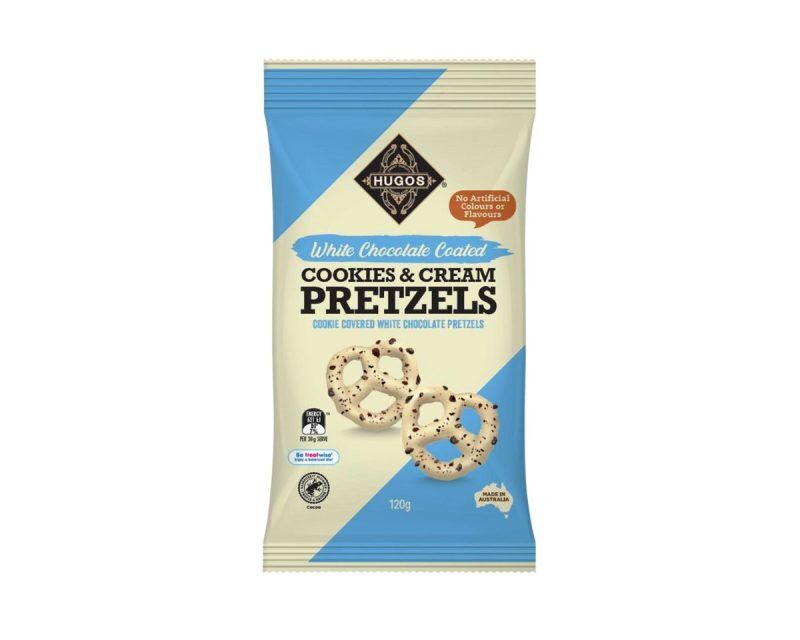These Hugos White Chocolate Coated Cookies & Cream Pretzels combine a sweet, creamy coating with a classic pretzel crunch. Ideal for sharing, gifting, or enjoying as a quick treat, they offer a fun twist on a familiar snack.