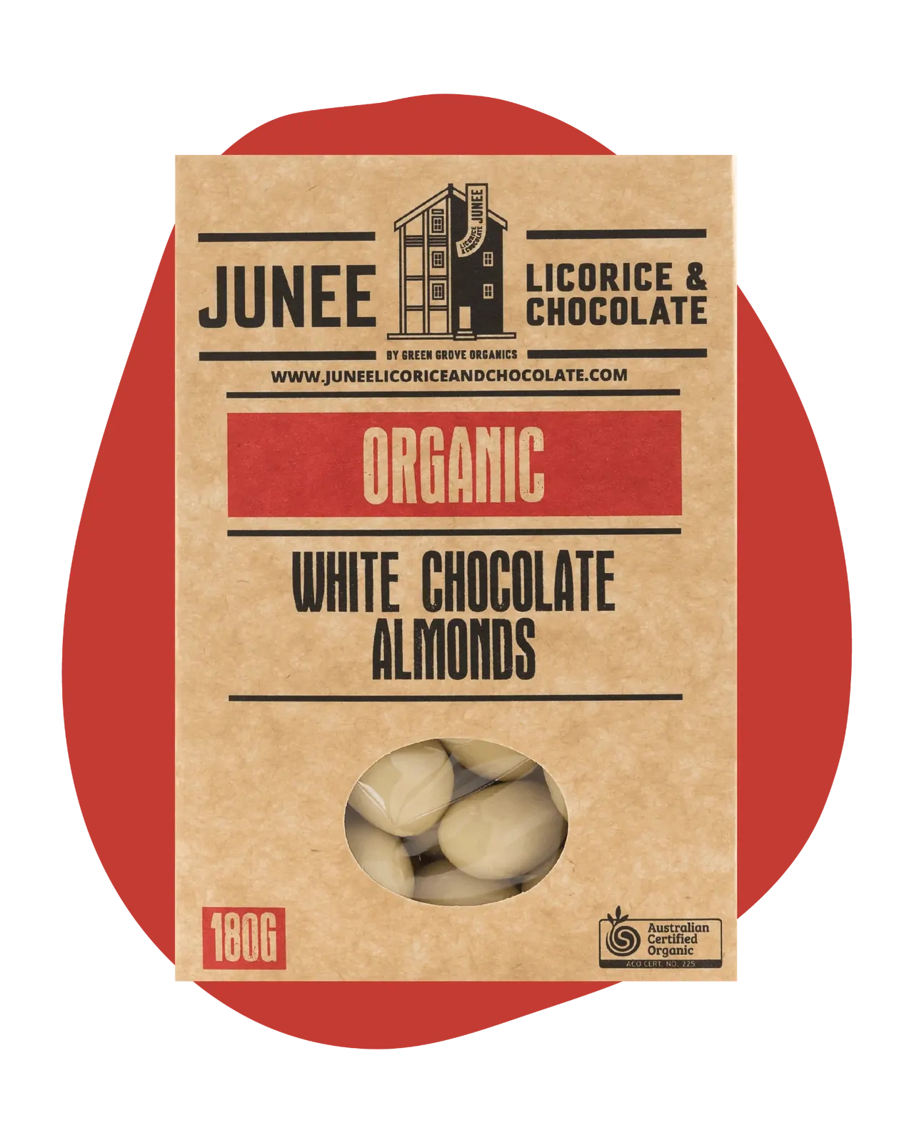 Almonds, white chocolate (whole cane sugar, cocoa butter, whole milk powder), glazing agent.