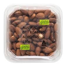 The Market Grocer Almonds Dry Roasted 150g: Deliciously crunchy and perfectly roasted almonds packed with nutrients. Ideal for snacking or adding a healthy crunch to your favorite dishes. Enjoy the premium quality and unbeatable taste of these dry roasted almonds.